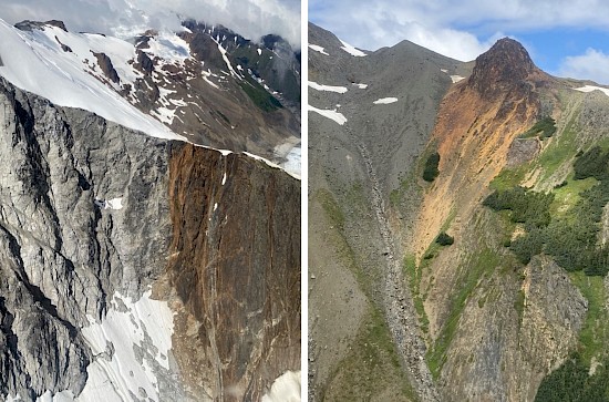Figure 2: Photographs of gossans at the Big Red-Ted Morris target. Gossans are strongest in area with high densities of quartz+sulfide veins.