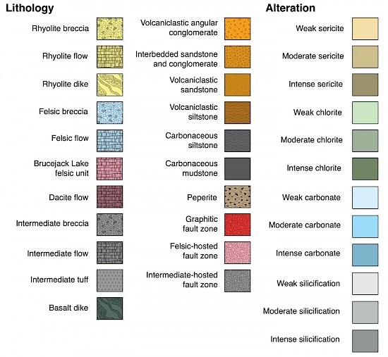 The Sib and Lulu VMS showings lie on the west limb of the Eskay anticline, with Sib located ~4 km southwest of the world-class Eskay Creek mine. VMS mineralization occurs at several stratigraphic positions within the Hazelton Group (Figure 1), with mineralization at Sib primarily hosted by peperitic rhyolite within the upper part of the Spatsizi Formation (Figures 1 and 2), and the highest grades at Lulu hosted within peperitic Eskay rhyolite (Figures 3-5).